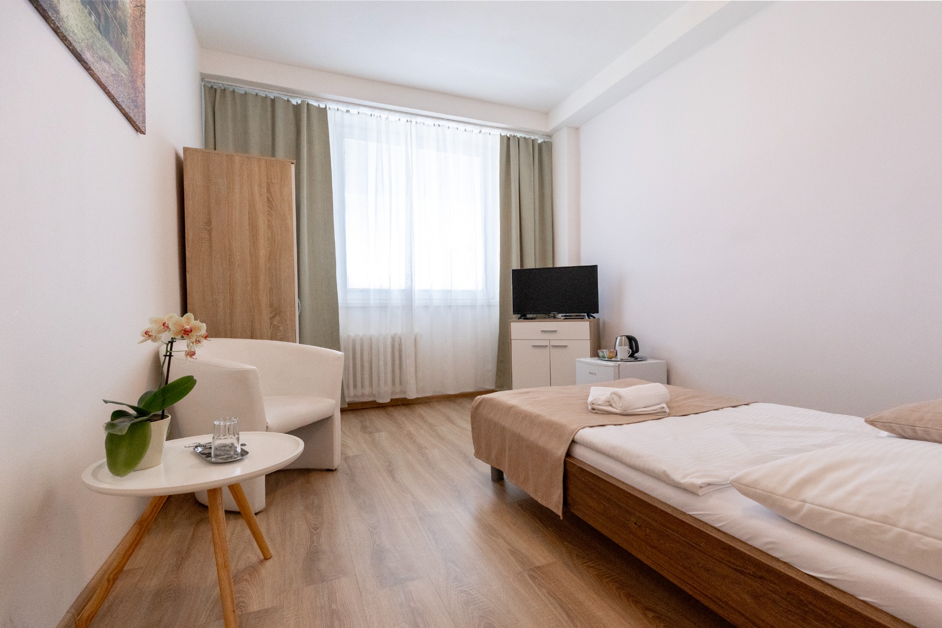 V každom byte je samozrejme k dispozícii chladnička, vlastné sociálne zariadenie so sprchovým kútom, WC s umývadlom.